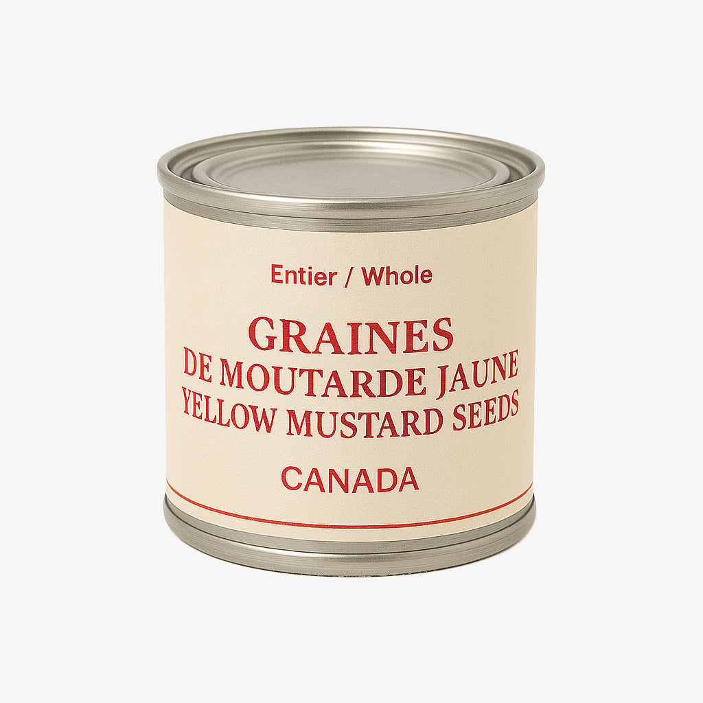 Utilisez-la entière ou moulue pour préparer des vinaigrettes, des condiments, des cornichons et des marinades. Les graines de moutarde jaune entières sont également utilisées dans les cornichons et les marinades. La moutarde jaune est également idéale pour les mélanges d'épices : elle est un ingrédient important de nombreux mélanges, comme le traditionnel mélange américain pour viande. Mélangez à parts égales de la moutarde concassée et des graines de coriandre pour obtenir une croûte idéale pour le poisson grillé. Particulièrement délicieuse sur le saumon grillé.